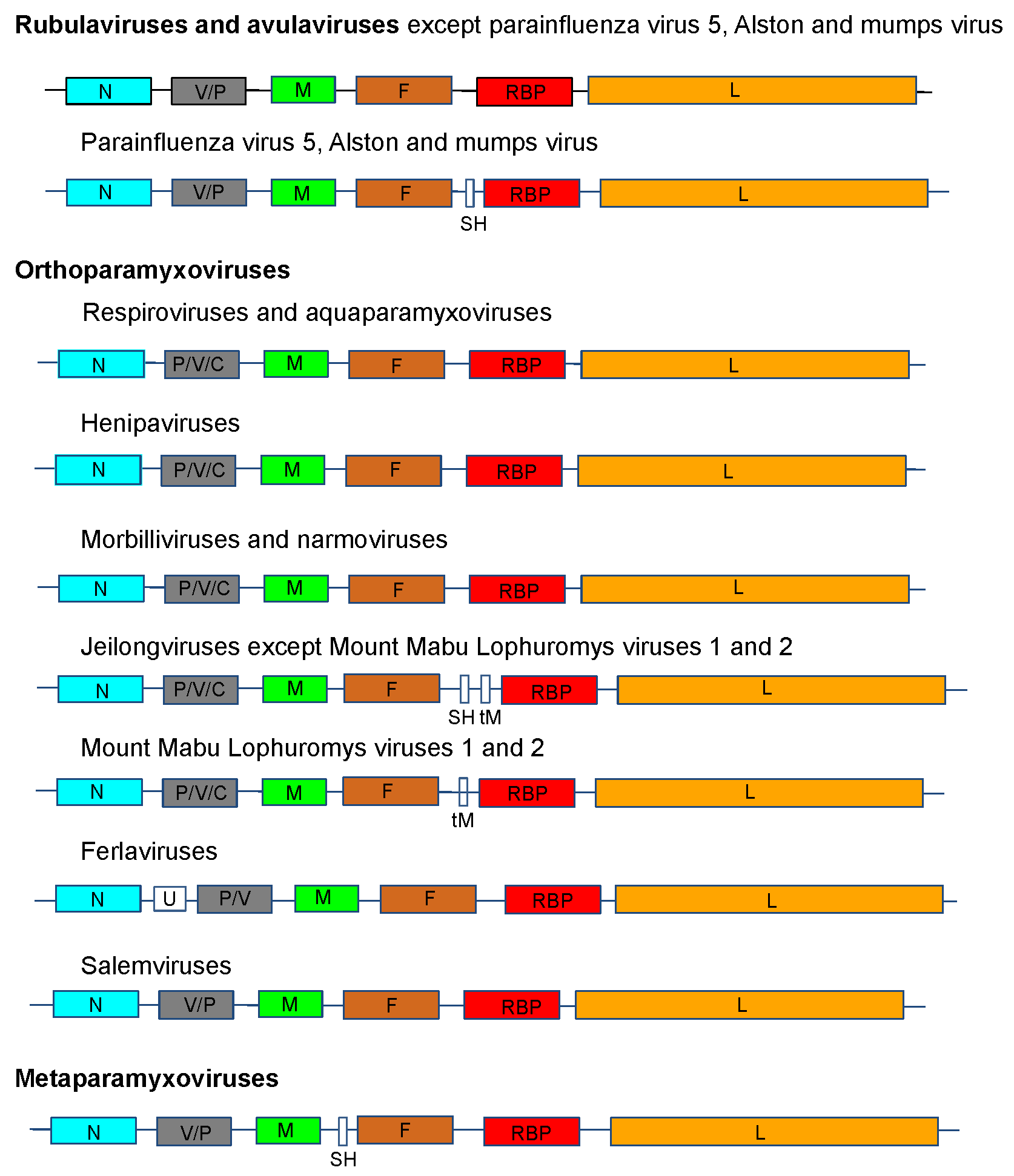 The genome organization is illustrated in Figure 2. .Paramyxoviridae for viruses representing 14 of the genera in the family.
